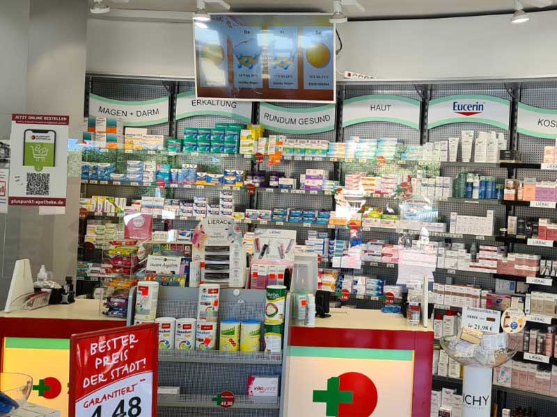 Ganz egal ob telefonisch, per E-Mail, über soziale Medien oder direkt bei uns in der Apotheke, wir sind für Sie da. Es erwartet Sie in Ihrer Pluspunkt Apotheke ein stets kompetentes und freundliches Team. Für Ihre individuelle Beratung nehmen wir uns gerne Zeit. Wir stehen Ihnen als Ansprechpartner für Fragen zu Gesundheit und Präventionsmaßnahmen zur Seite.