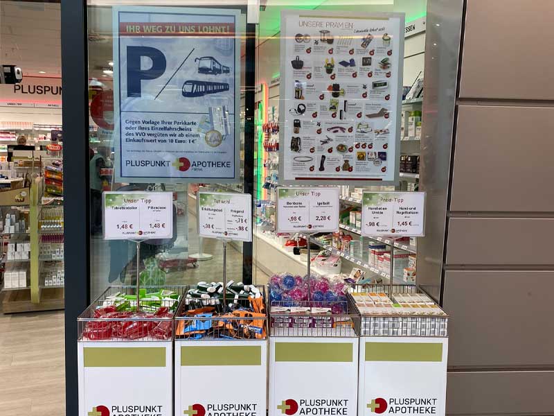 Ganz egal ob telefonisch, per E-Mail, über soziale Medien oder direkt bei uns in der Apotheke, wir sind für Sie da. Es erwartet Sie in Ihrer Pluspunkt Apotheke ein stets kompetentes und freundliches Team. Für Ihre individuelle Beratung nehmen wir uns gerne Zeit. Wir stehen Ihnen als Ansprechpartner für Fragen zu Gesundheit und Präventionsmaßnahmen zur Seite.